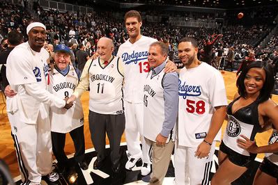 Deron Williams and the rest of the team exchange jerseys with former Brooklyn Dodgers